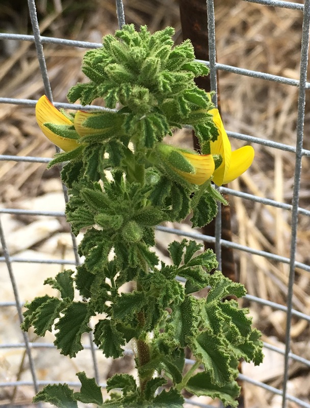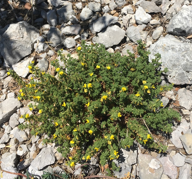 Left: Ononis zschackei in its natural habitat. Right: Detail of the flower of O. zschackei
