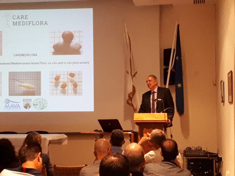 In the first section of the workshop, the Minister of Agriculture, Rural Development and Environment, Dr Costas Kadis, gave a welcome speech followed by the director of the Department of Forests, Mr Charalambos Alexandrou, and by the Director of the Agricultural Research Institute, Dr Dora Chimonidou. Additionally, invited academic speakers from Greece (Dr Kyriakos Geogriou, Department of Biology, National and Kapodistrian University of Athens) and Cyprus (Dr Ioannis Vogiatzakis, Open University of Cyprus, Takis Tsintides, ex Director of the Department of Forests) gave oral presentations related with the conservation of flora in Greece and Cyprus.