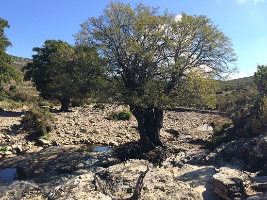 Rhamnus persicifolia patriarch in Rio Is Eras (Talana, CE Sardinia). Photograph by G. Bacchetta.